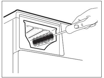 3. Переконайтеся, що всі залишки миючих засобів видалено з верхньої та нижньої частини ніші для дозатора.