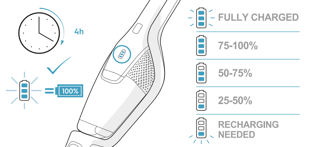 Примечание. Время зарядки может различаться в зависимости от модели пылесоса.