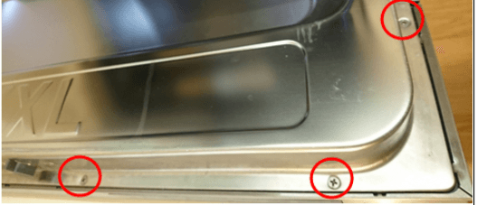 зніміть зовнішню дверцята, відкрутивши 6 гвинтів (3 зліва та 3 праворуч)