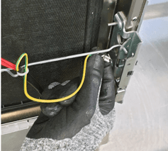 відкрийте дверцята і заблокуйте рух петлі, помістивши шпильку у виділений отвір