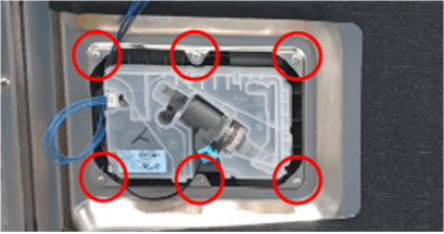 Видаліть 6 фіксуючих гвинтів та від'єднайте всі з'єднання та джгут від розеток до видалення дозатора миючого засобу.