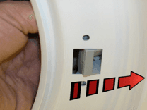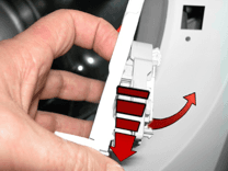 Нахиліть його у напрямку стрілки, щоб звільнити від засувки, одночасно натискаючи великим пальцем мікроперемикач у напрямку, показаному стрілкою