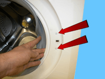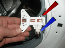 Відкрутіть два гвинти, що кріплять запобіжник дверей до передньої панелі.