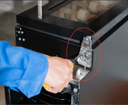 Знову акуратно прикріпіть скляні двері та нижню петлю та закріпіть гвинти.